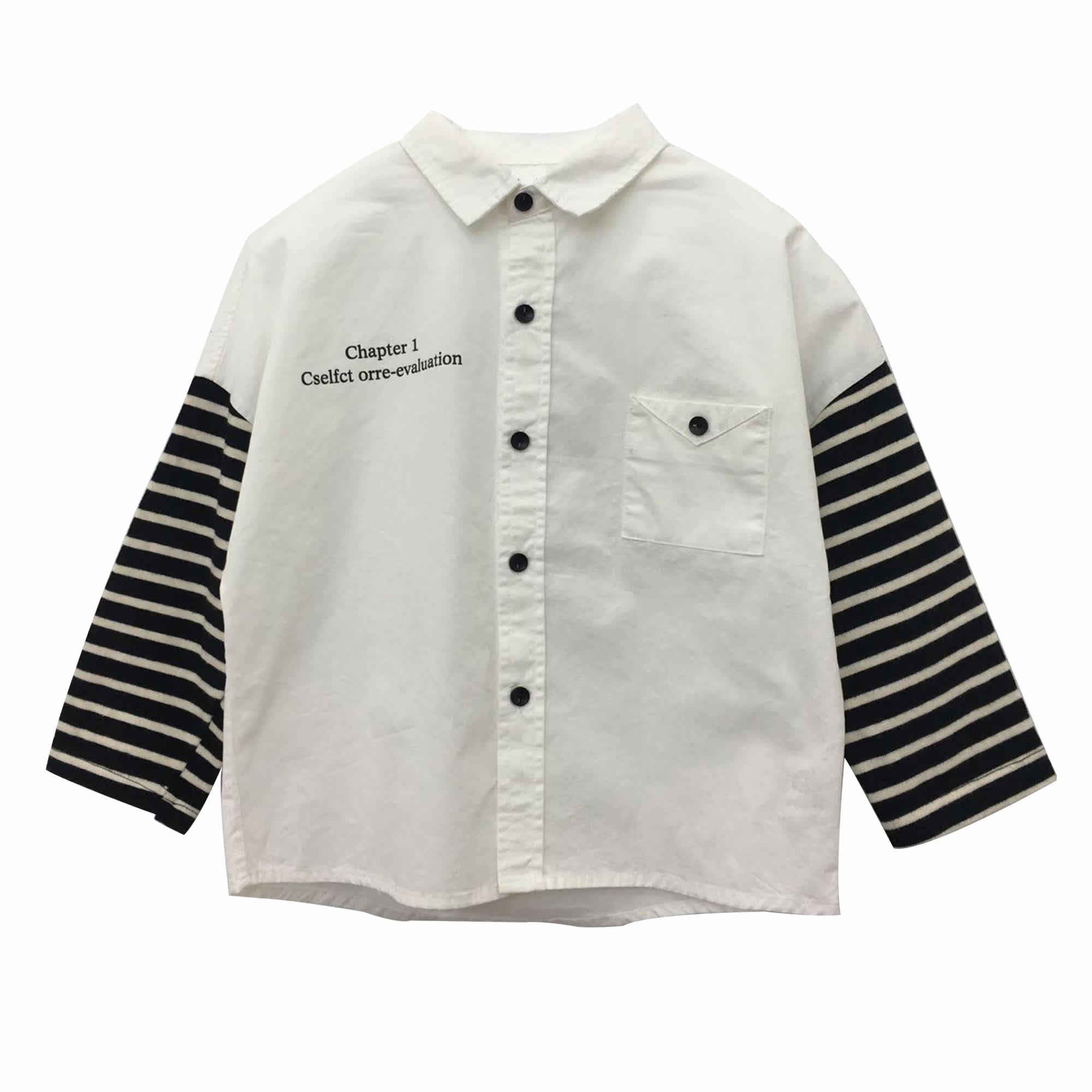 Meal Little Fan clothes Men and women Children's Collared Sleeves White Shirt Children 2019 Fall New Korean version Shuai 100 Lap Shirt Tide