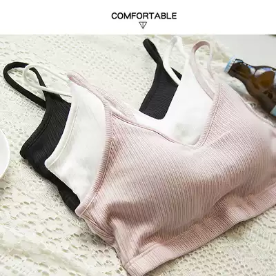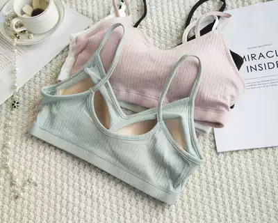 Halter without steel rims with chest pad Cup one-piece student girl bra small camisole Beautiful back breast bandeau