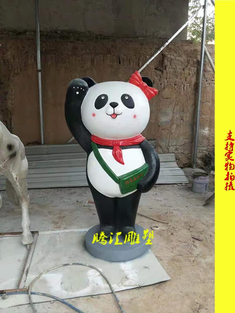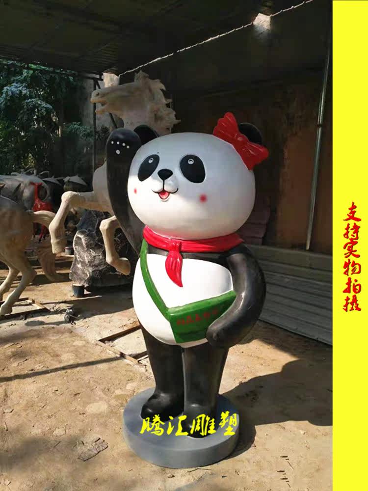 Cartoon panda sculpture string world string string incense welcome Meichen fiberglass back school bag panda class flower sculpture custom