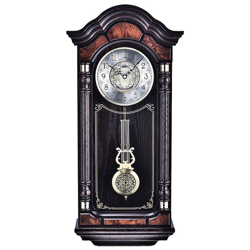 Brown solid wood music clock QXH004B