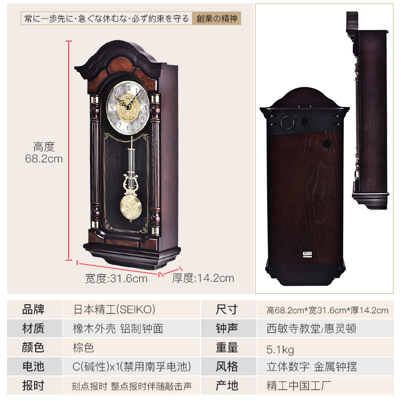 SEIKO Nippon Seiko clock solid wood high-end European atmospheric living room office hour music chimes wall clock