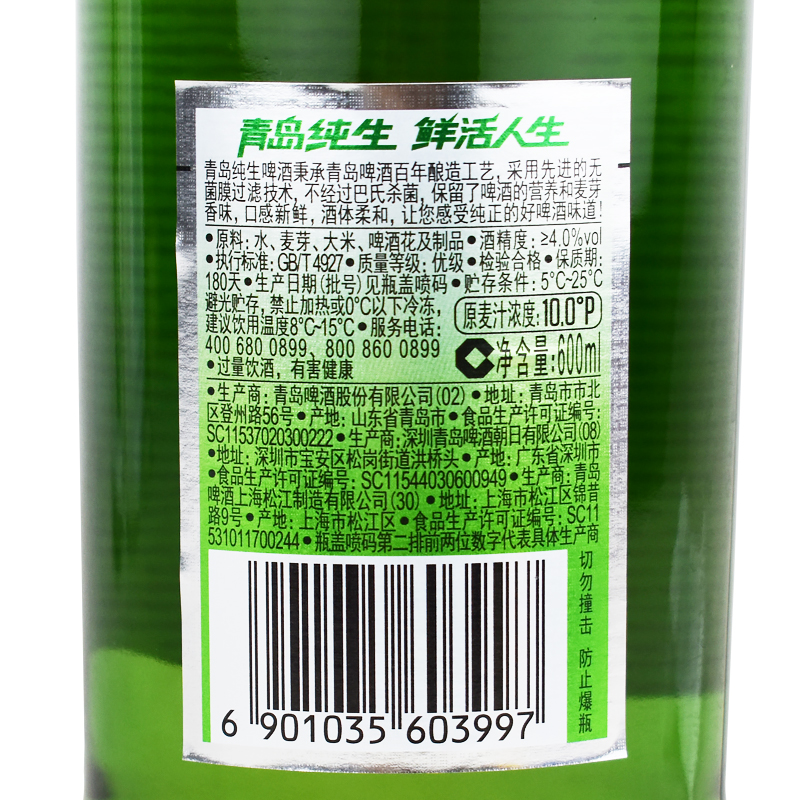 Qingdao Chunsheng 600ml * 12 bottles of Qingdao pure draft beer large bottles of glass bottles