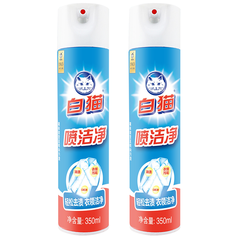 White cat spray clean 350ml * 2 bottles of stain removal collar dry cleaner to remove grease, sweat and yellow