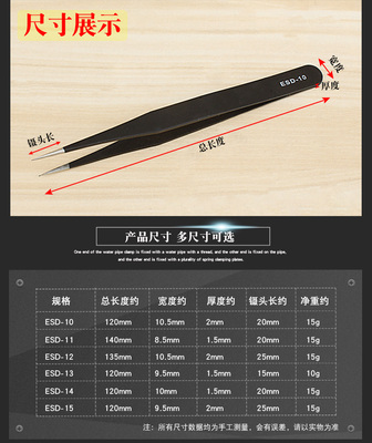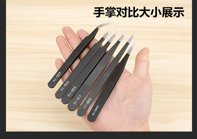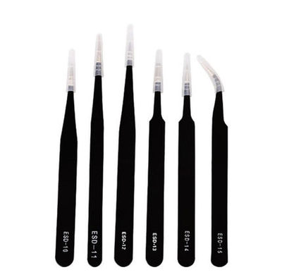 Tweezers ESD tweezers tool anti-static flat round head flat head fine tip elbow stainless steel black tweezers set
