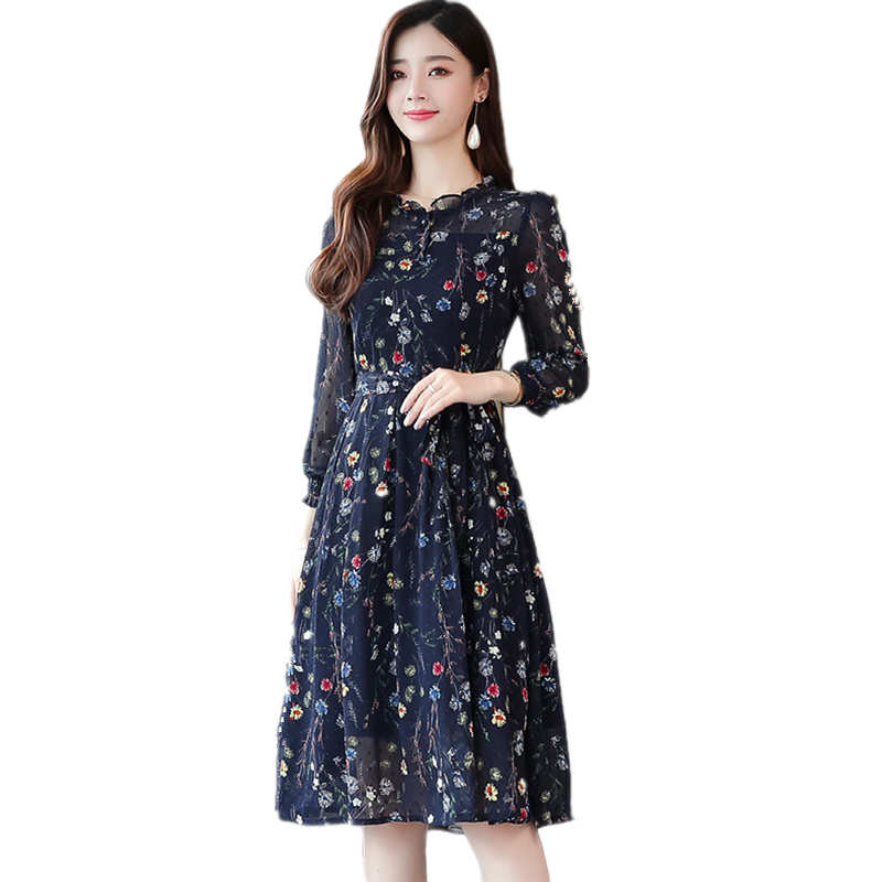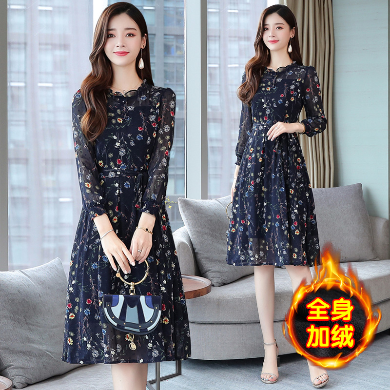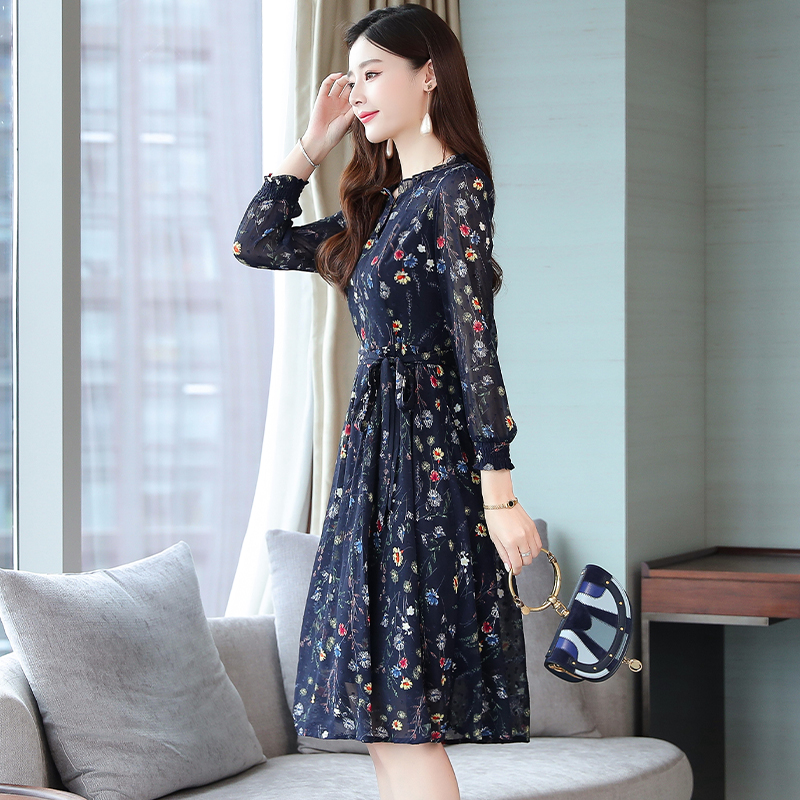 Light cooked wind base chiffon floral dress 2021 spring and winter new inner temperament popular Western skirt