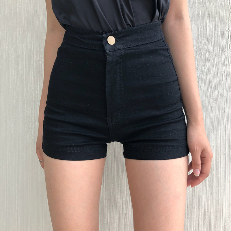 Sexy hot pants 2022 new spring clothing Han version 100 hitch slim black high waist and body elastic denim shorts female tide