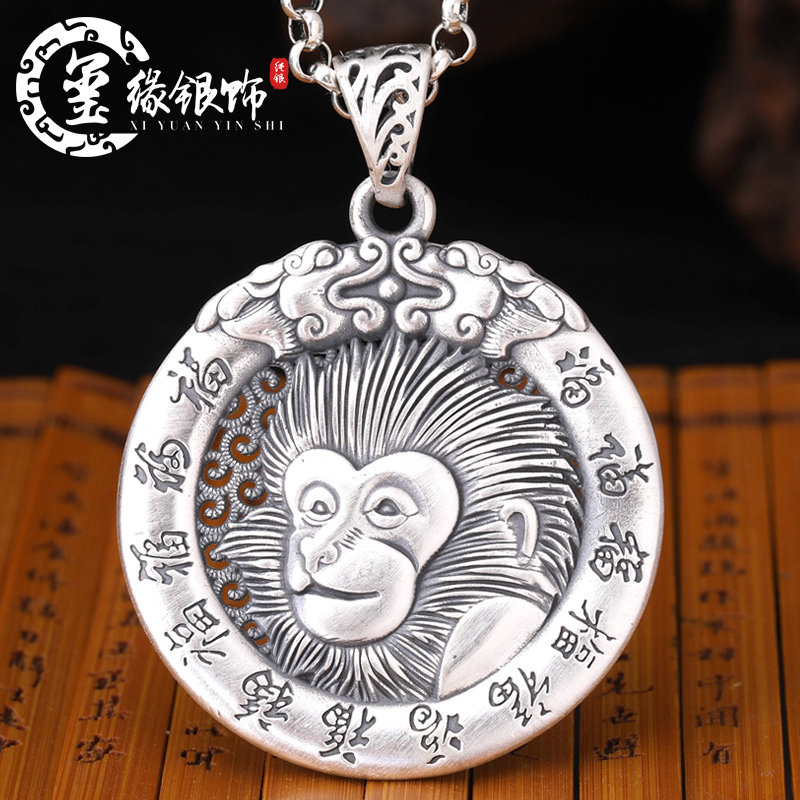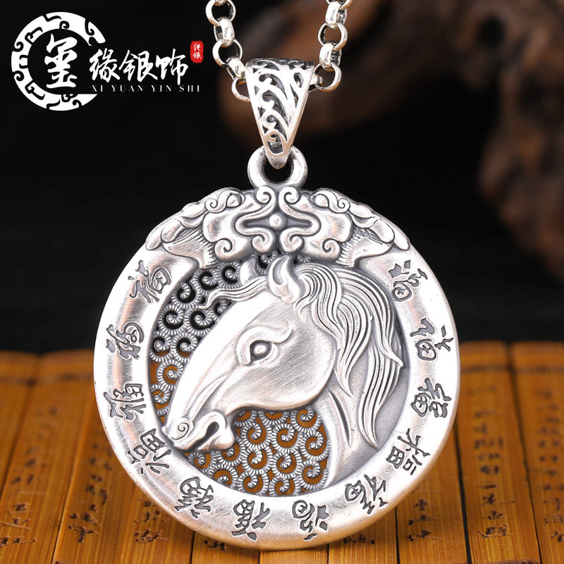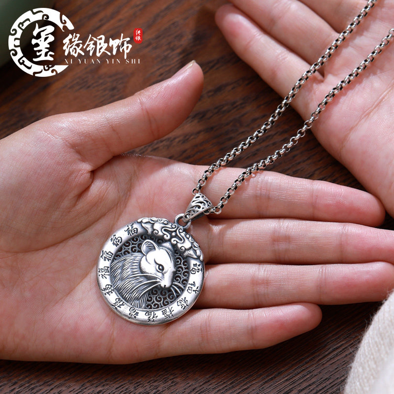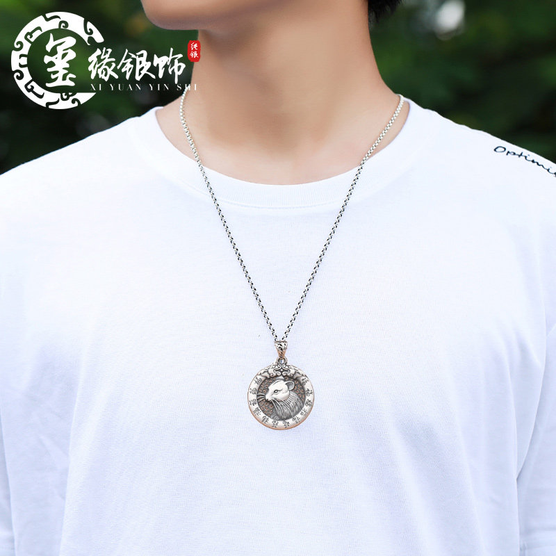 About 23 gr zodiac pig silver pendant (wax rope certificate) zodiac pendant (note style) 60 cm silver necklace approx. 23 gr zodiac silver pendant (wax rope certificate)