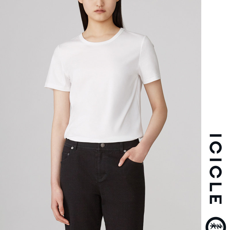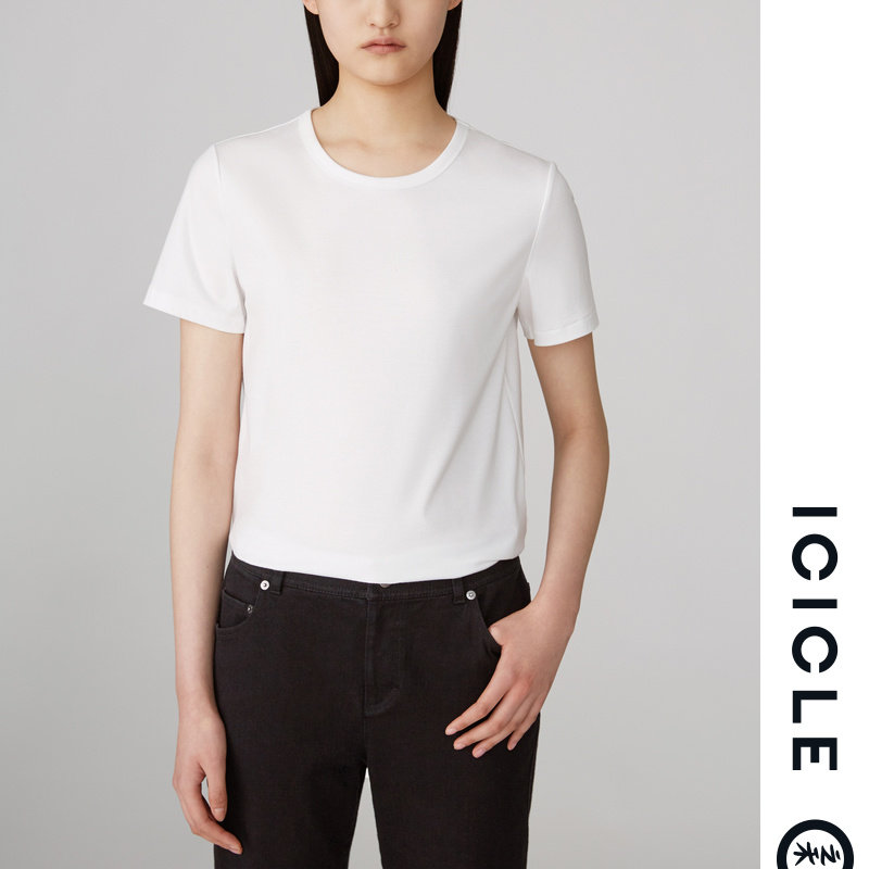 ICICLE's Wo Women's Clothing Summer Soft Full Cotton Knit Comfort Inset Bottom Minimalist Casual T-shirt Short Sleeve Woman