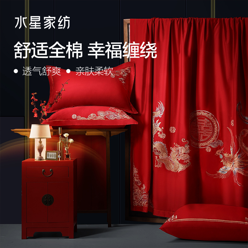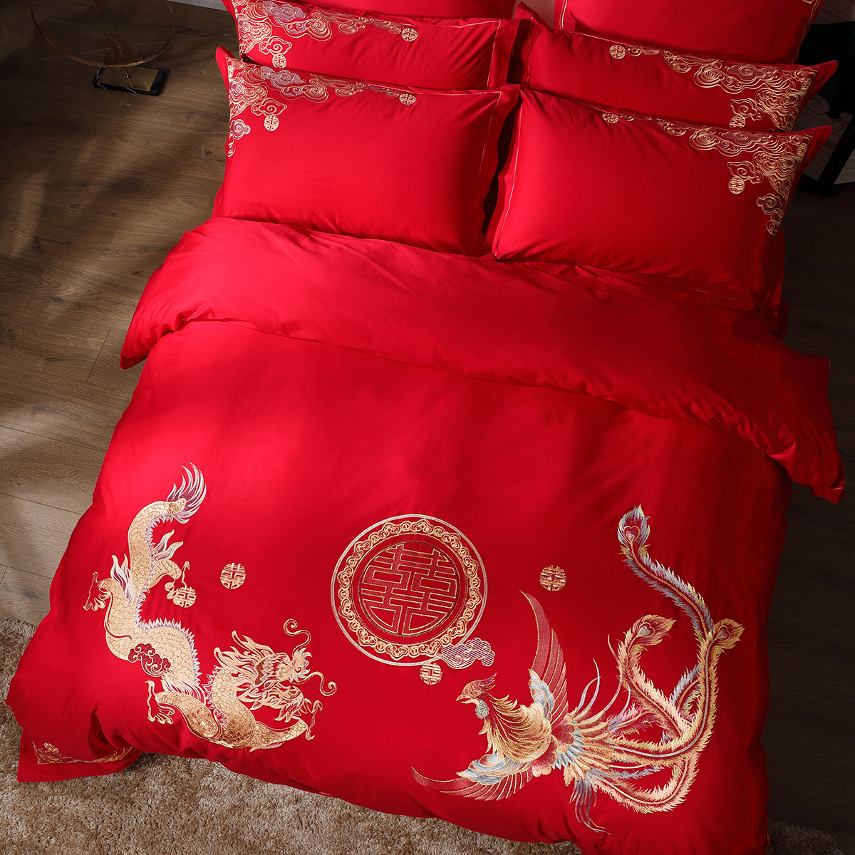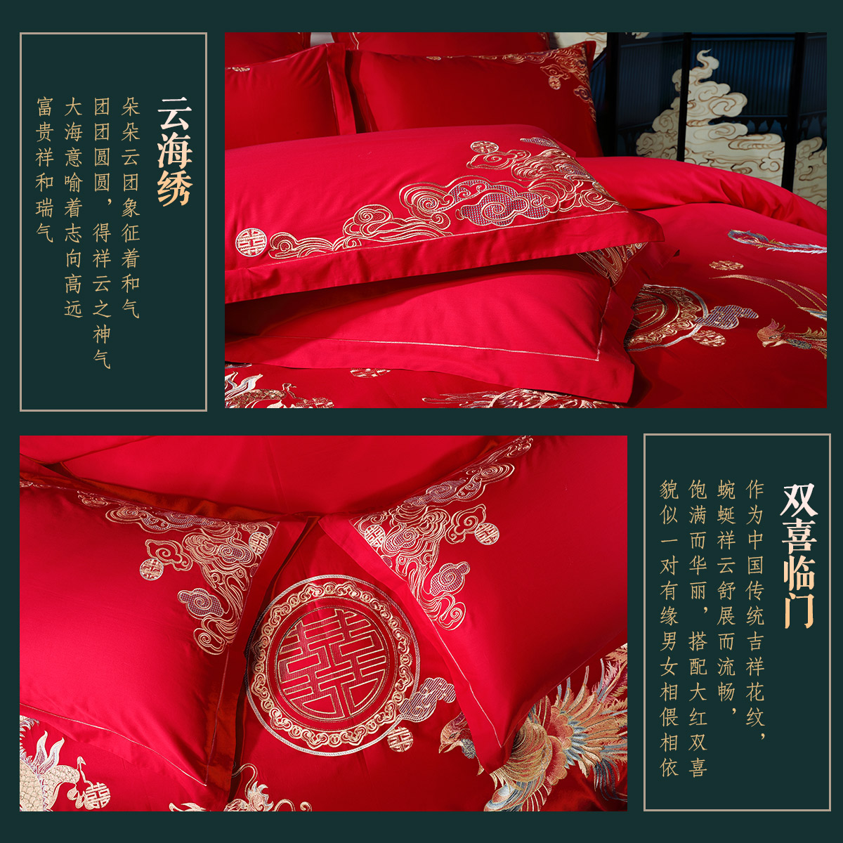 Longfeng Ruicai four-piece set (100% cotton embroidery process can be machine washed) Longfeng Ruicai six-piece set (100% cotton embroidery process can be machine washed) Laixi four-piece set(60S long