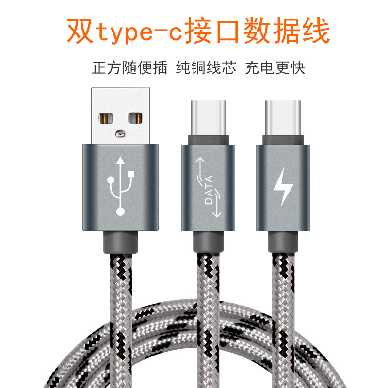 Typec data cable two-in-one Huawei P30 dual-head Apple Android one-to-two mobile phone charging cable universal