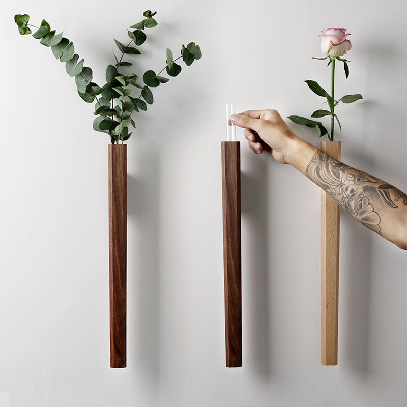 Flower-flower vase Japanese style wall-mounted vase floral water peels with black walnuts solid wood flowers inserts hanging wall Decorative Tea Room