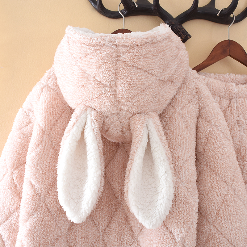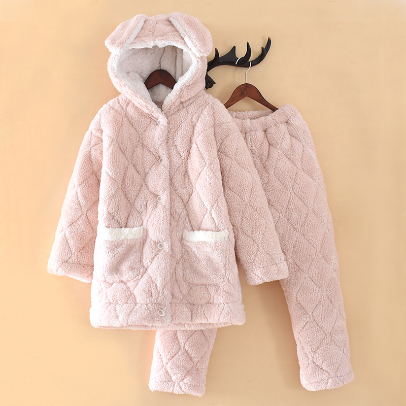 Coral Suede Pajamas Woman Winter Triple Clip Cotton Thickened plus suede warm and cute to wear out of winter Home Suits Suit