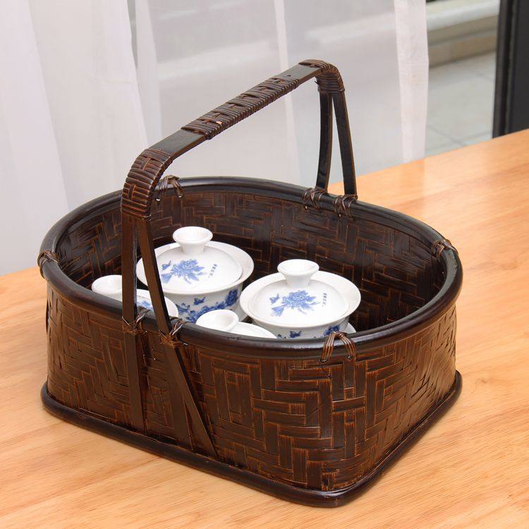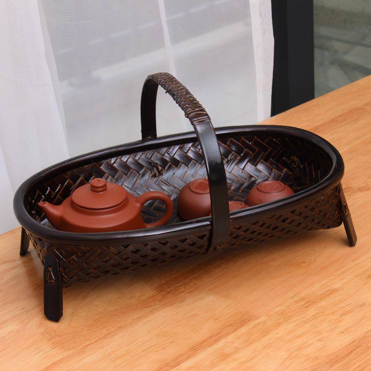 Antique high foot fruit basket (round) antique high foot high tray (oval) large lacquer with cover containing box four feet with lid tea set box large lacquer oval lifting basket retro to make old lacquerware lifting basket