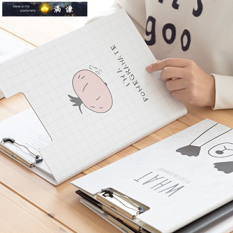 A4 Double-board folder Small fresh writing stationery board clip Student office writing pad board Cute roll storage clip Korean cardboard splint exam paper Office school supplies Multi-functional Female