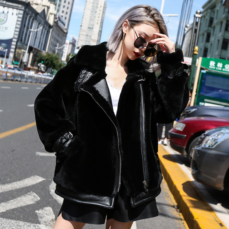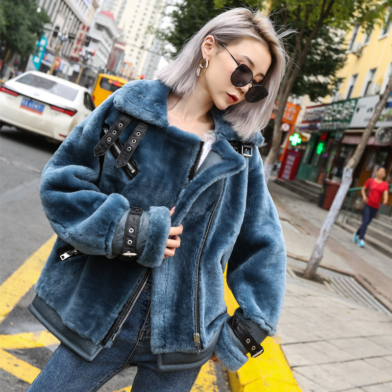 2022 new Haining fur all-in-one coat women's sheepskin Korean version large size sheep shearling fur motorcycle jacket