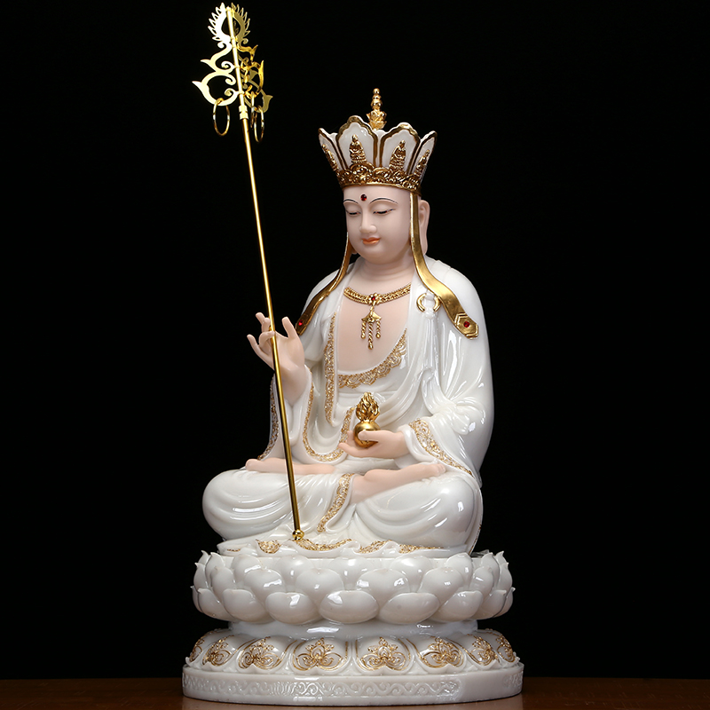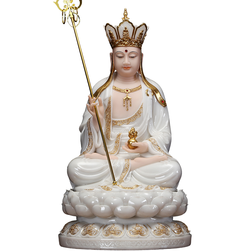 Han White Jade Dizang King Bodhisattva Home for Buddha Ornament Stone Carving Gold Inlaid Jade Jiuhua Mountain Tibetan Bodhisattva Three Saints