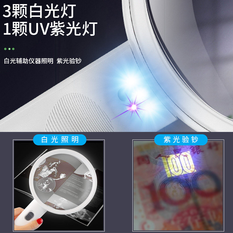 Dragon Eye German Process High Handheld Magnifier with LED lamp Purple Light HD Old age See mobile phone children Primary school children with 20 Elderly Read 10 enlarged mirror 100 60 60 Portable 1000