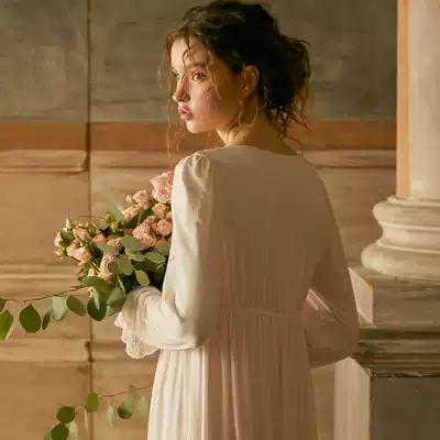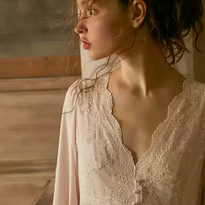 Chenxi original autumn retro palace sexy lace V-neck nightgown female mesh modal long sleeve pajamas home clothes
