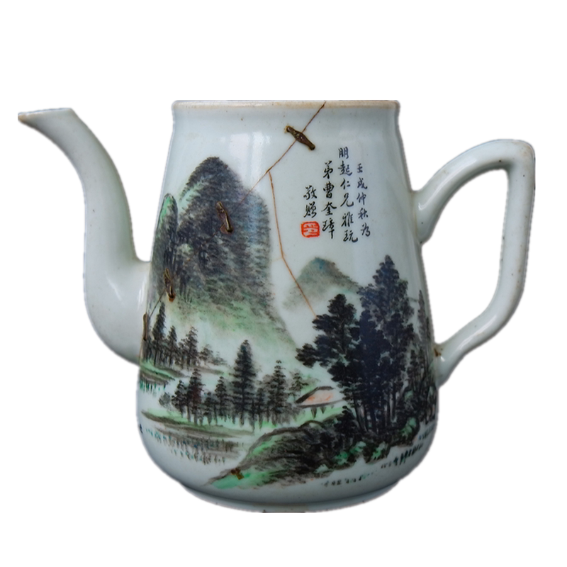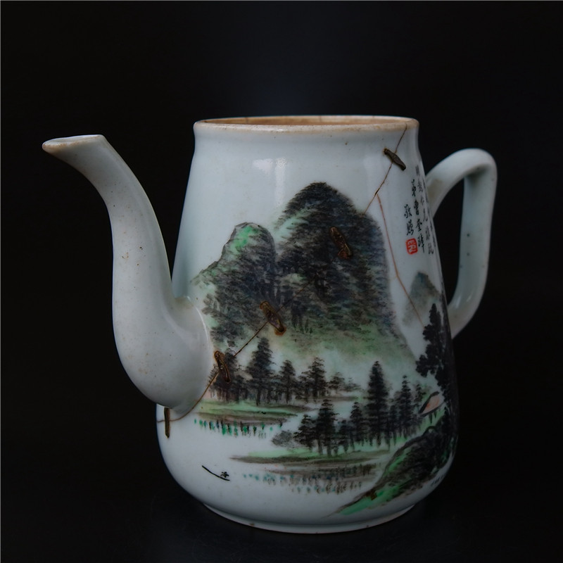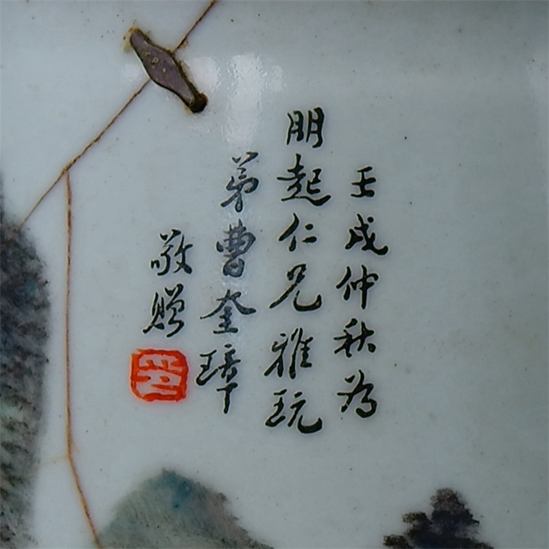 Phase = Famous Calligrapher Chen Pine Straw Book Light Magenta Landscape Scenery Pot works Literati Porcelain Ceramic Art Collection