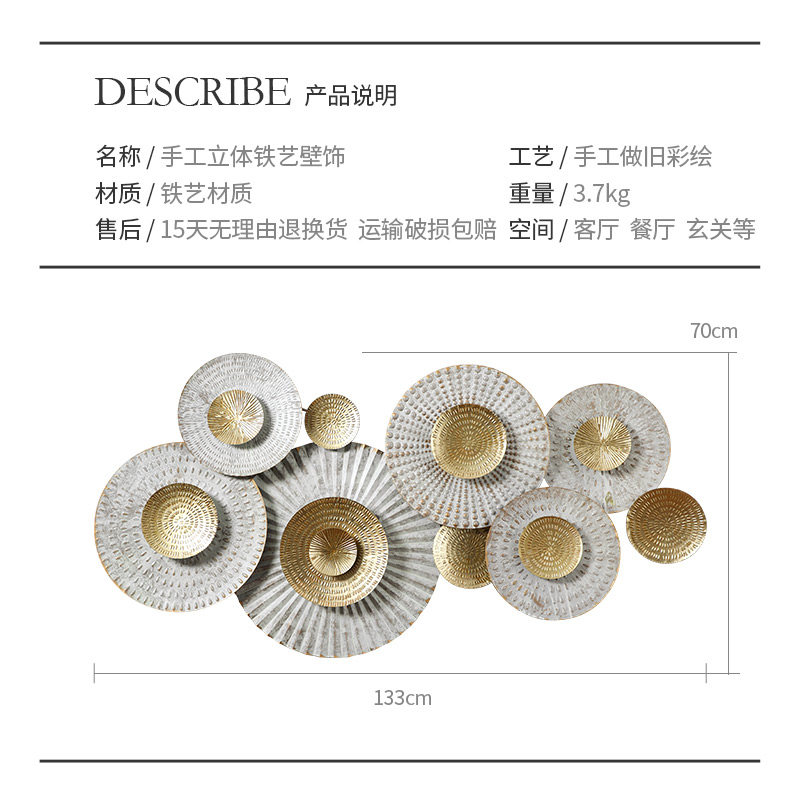 Nordic Minimalist Living-room Light Lavish Metal Wall-mounted Sofa Background Wall Accessories Creative Pendants Bedroom Home Iron Art Wall Accessories