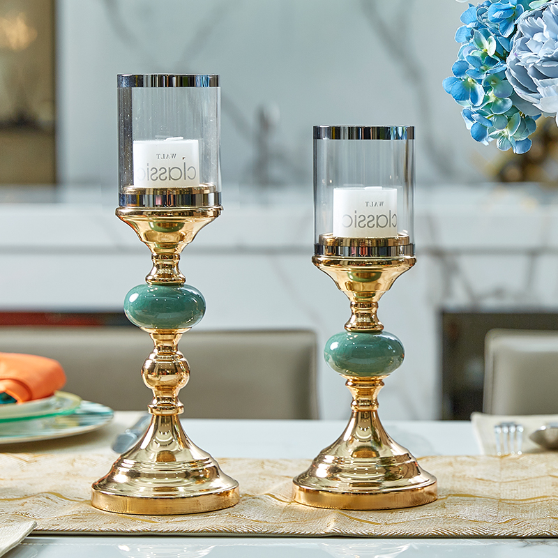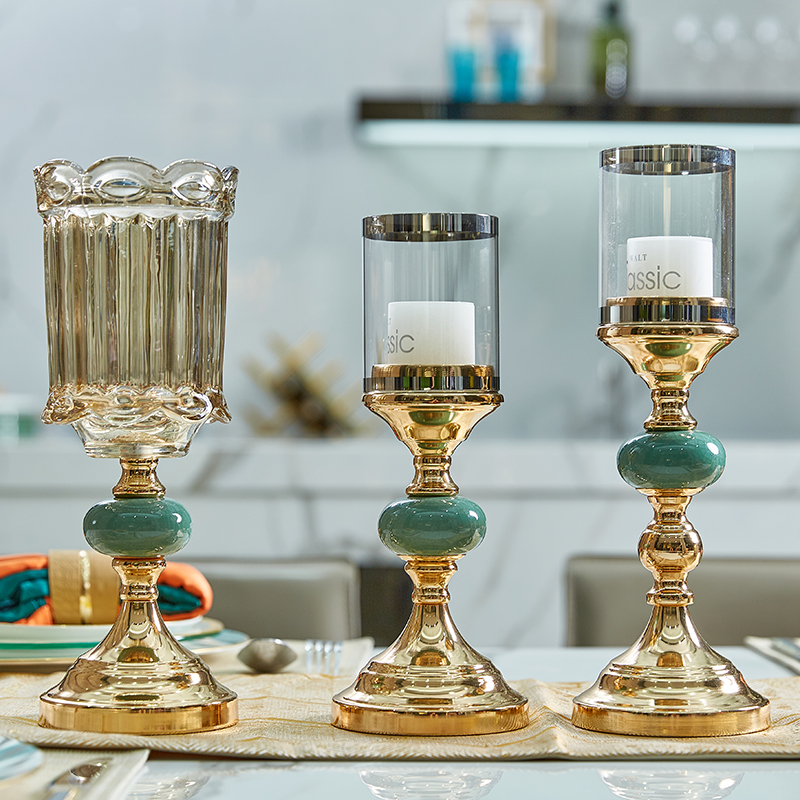 Light luxury golden candle holder ice crack ceramic candlelight dinner props simple European dining table living room porch decoration