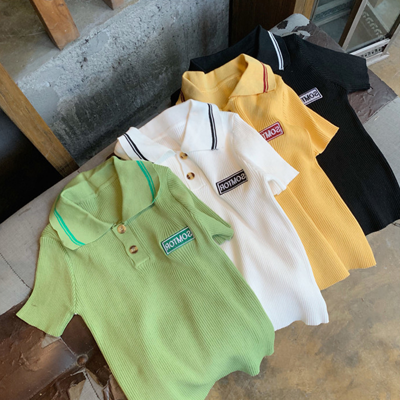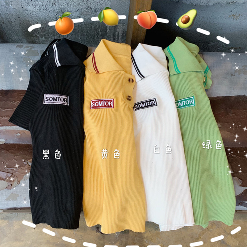 Avocado green ice silk knitted sweater short-sleeved Korean version Hyuna style POLO shirt short tight-fitting slim navel top women