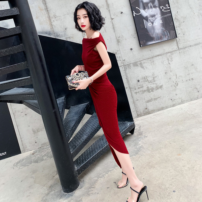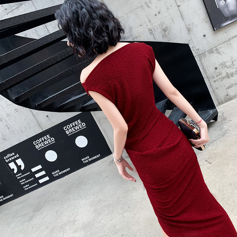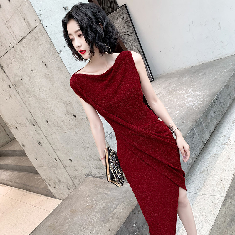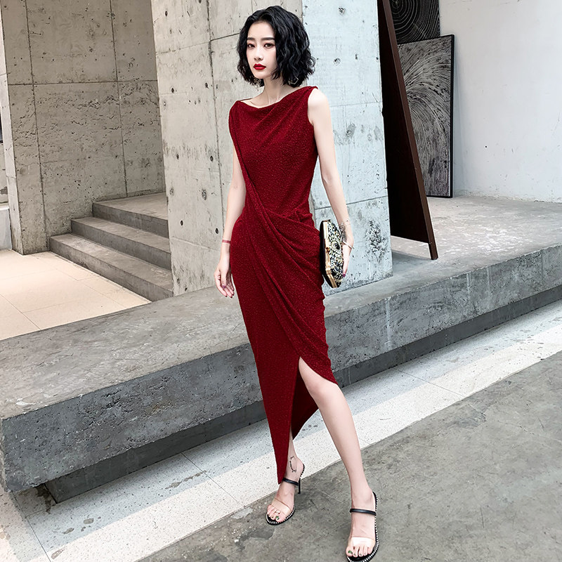 Red high-end evening dress skirt female 2023 new noble temperament banquet celebrity light luxury niche host senior
