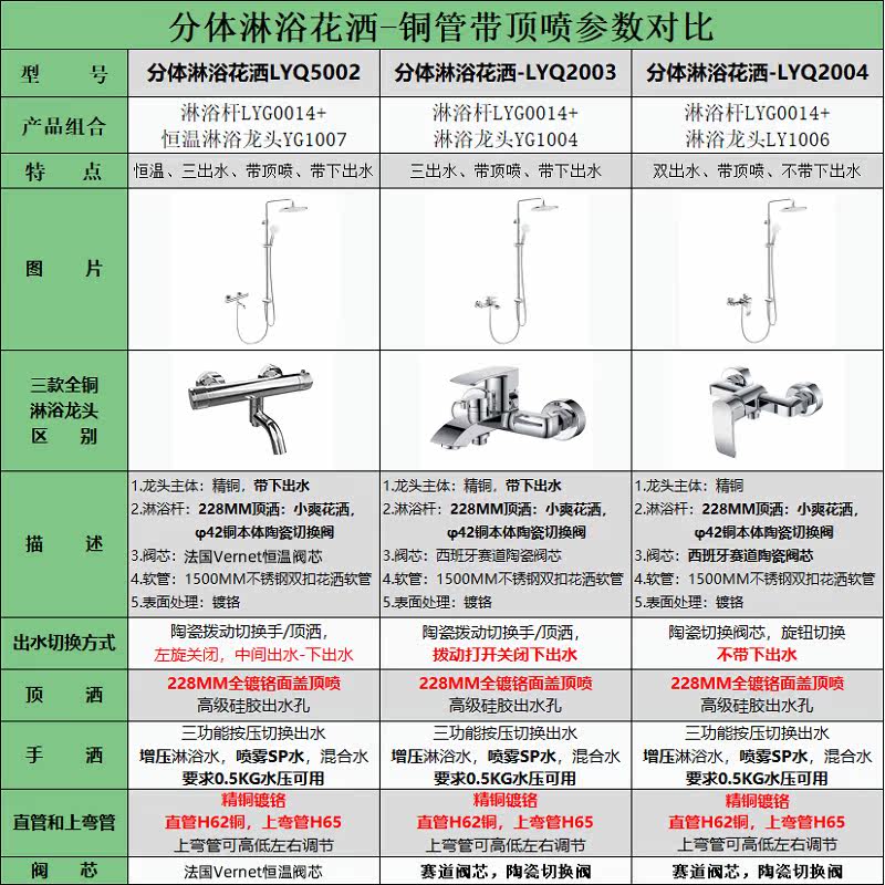 (full copper tube) LYQ5002 thermostatic (full copper tube) LYQ2003 chromed (full copper tube) LYQ2004 chrome-plated (stainless steel tube) LYQ5001 thermostatic (stainless steel)