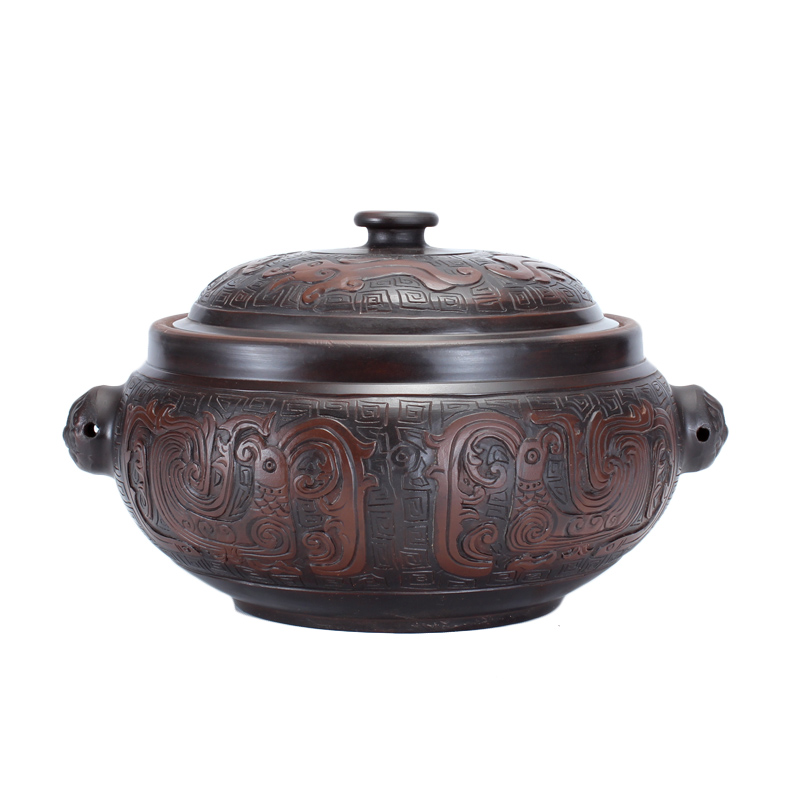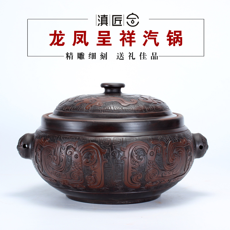 Yunnan craftsman Yunnan Jianshui steam pot relief craft steam pot Chicken steam pot Household dragon and Phoenix collection of handmade products