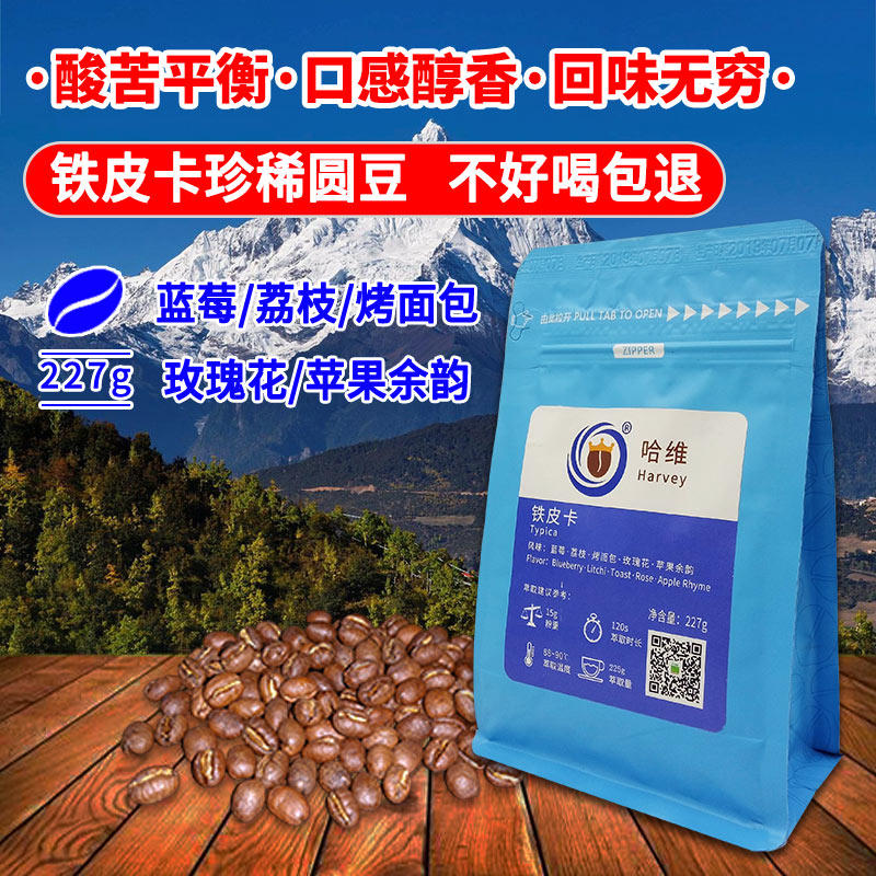 Harvey single product Blue Mountain black Yunnan Baoshan Tiepika black coffee bean round bean hand punch can be freshly ground powder 227g