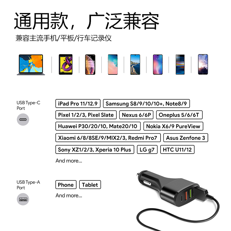Applicable to Xiaomi Hua for Apple iPhone multi - function mobile phone flat car charger USB - C car charger