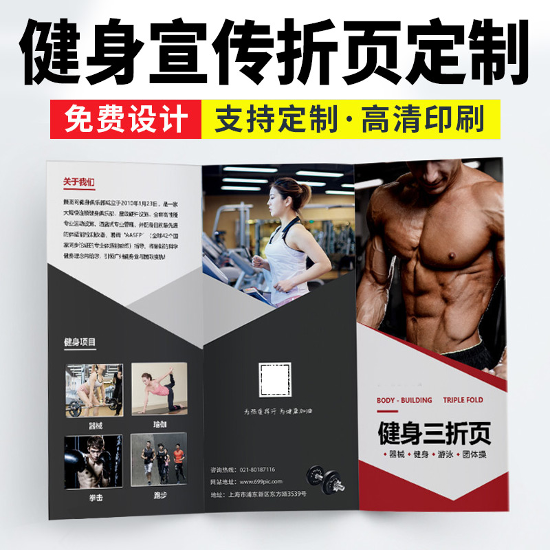 Gym flyer custom double-sided color page printing Pilates yoga taekwondo opening advertising design and production summer vacation swimming training class dm single page A4 tri-fold custom printing
