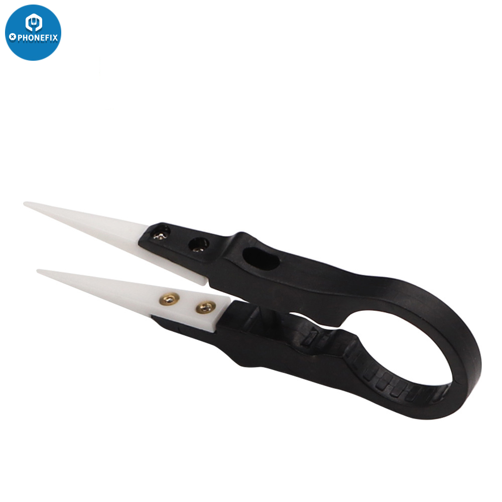 Multi-function ceramic tweezers anti-static high-temperature mobile phone fingerprint fly line tweezers black tip round tweezers