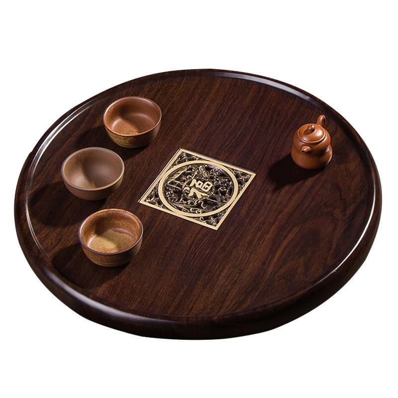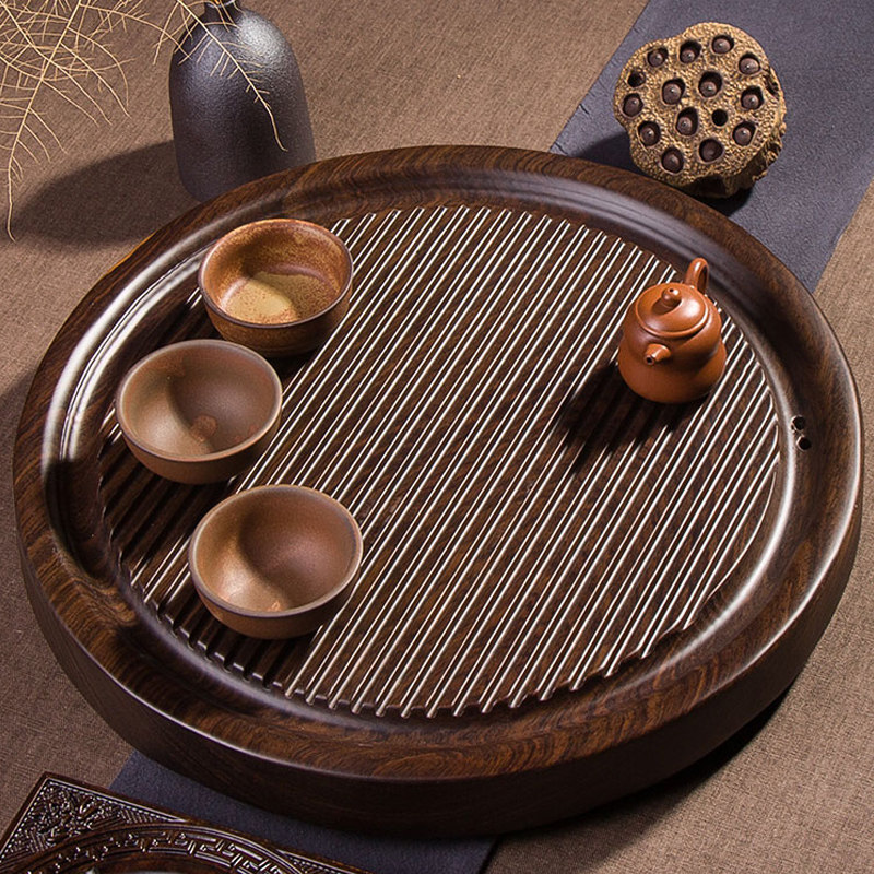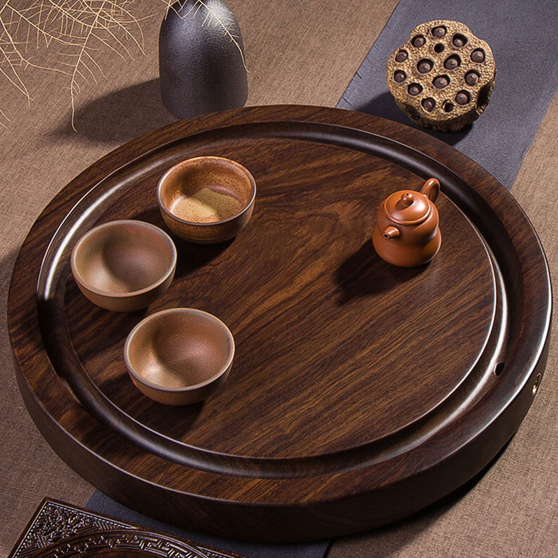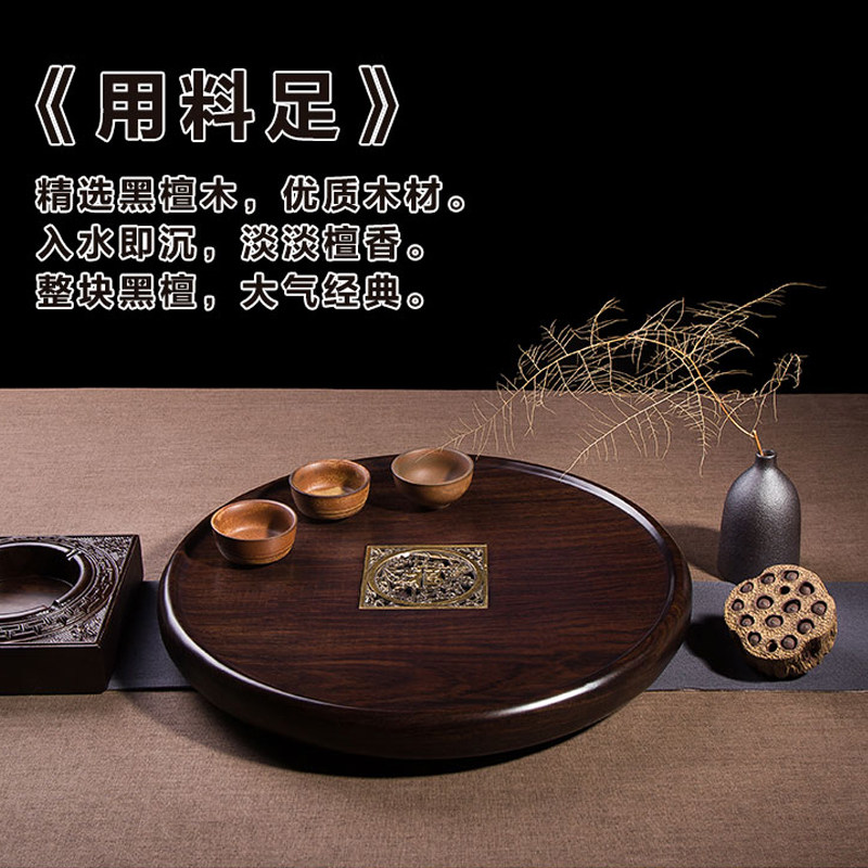Ebony wood tea tray solid wood household tray round simple tea table log kung fu tea set drainage small tea tray
