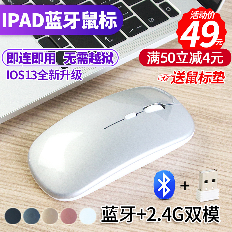 Tiger Bluetooth Mouse Mouse Suitable for Apple Pro11 12 9 Charging iPad5 6 7 flat air3 4 PCs mini5 Wireless phone mute ultra-thin Mini dual-mode None