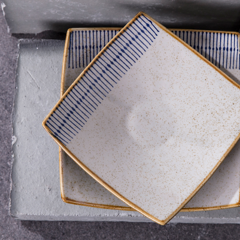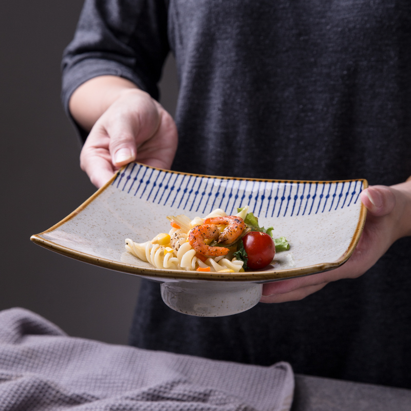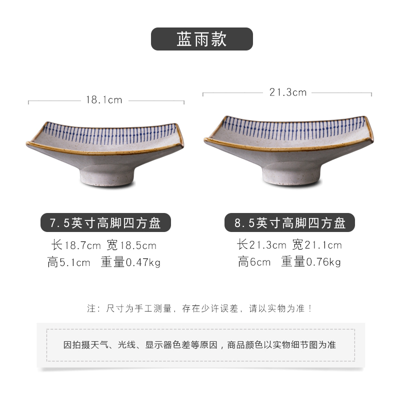 Japanese ceramic high-legged square plate Sushi sashimi plate Fruit plate Dessert plate Dining room commercial plate