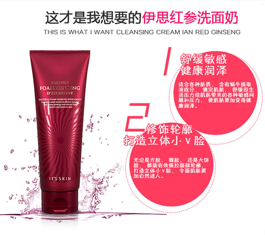 Korea its skin Yisi red ginseng snail facial cleanser 150ml moisturizing red snail facial cleanser