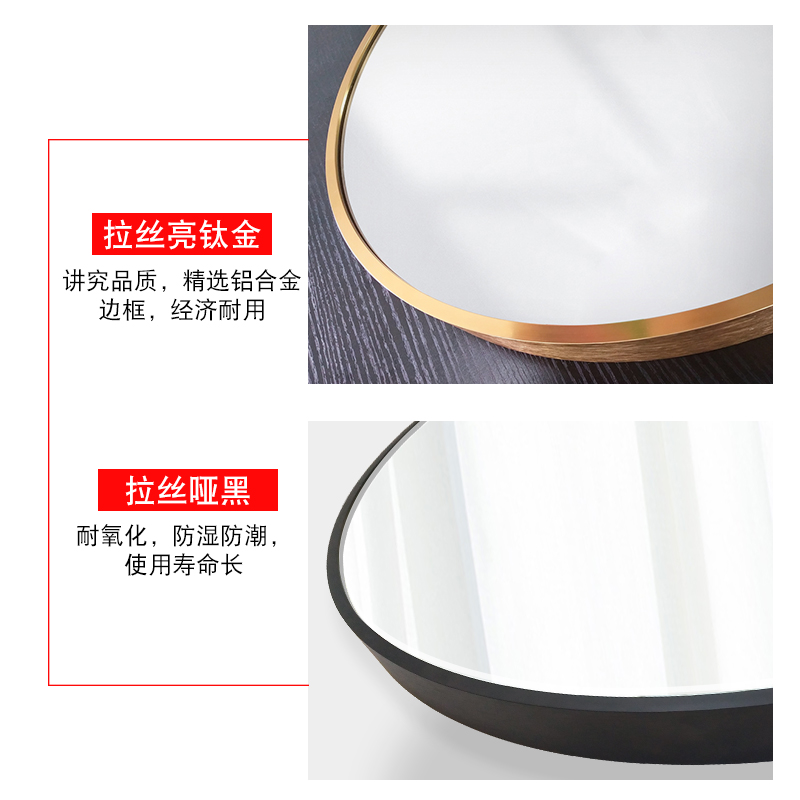 Nordic Aluminum Alloy Frame Wall-mounted Bathroom Mirror Makeup Room Bathroom minimalist Explosion-proof Makeup Makeup Bench Basin Round Mirror