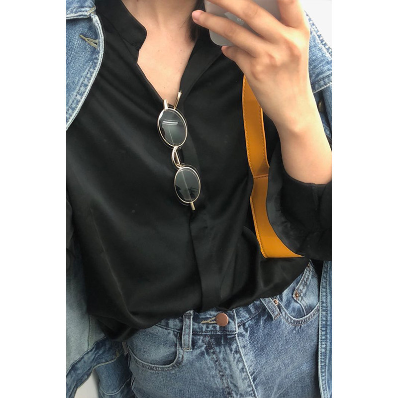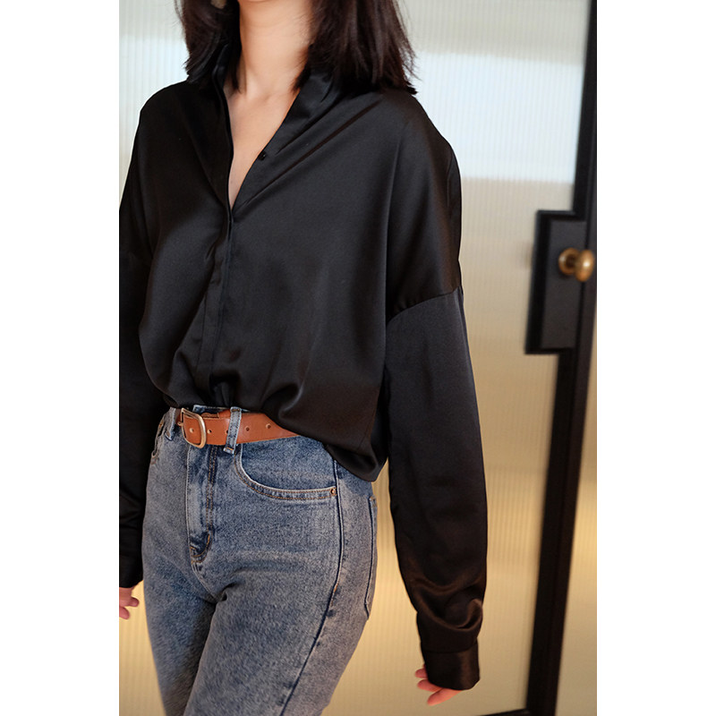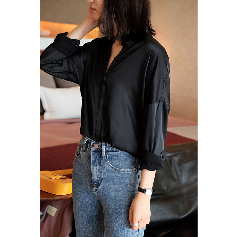 MMCC2022 spring new black shirt loose long-sleeved casual black shirt temperament women