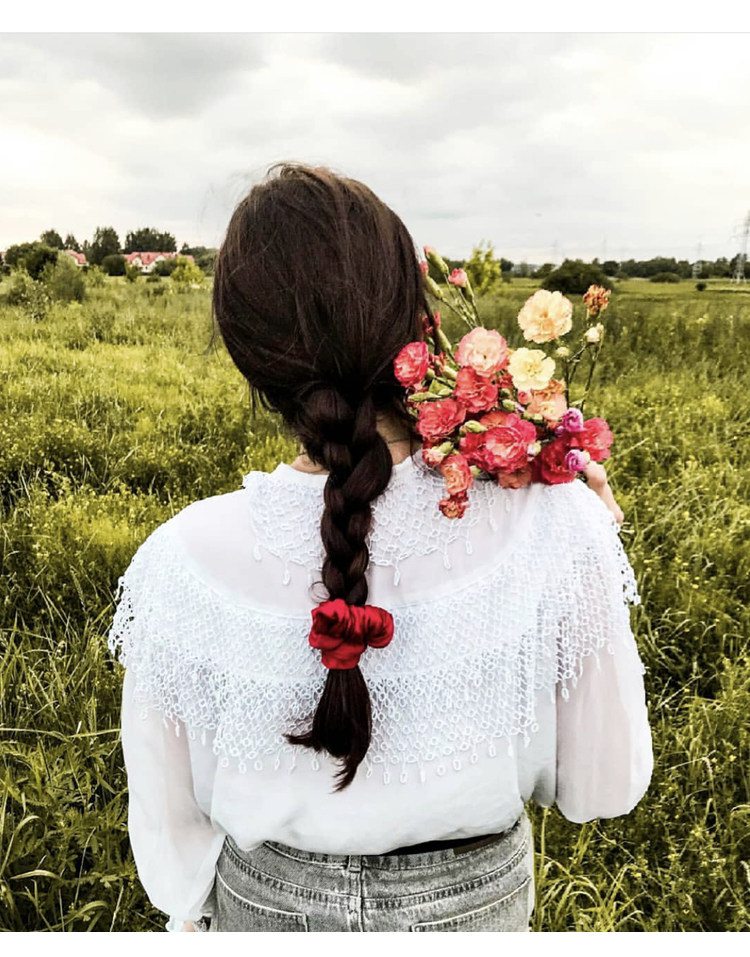 Jin You Creation Noble Red High-quality Silk Hair Circle Head Rope Tied Hair Elastic Band Female Adult Handmade Hair Accessories
