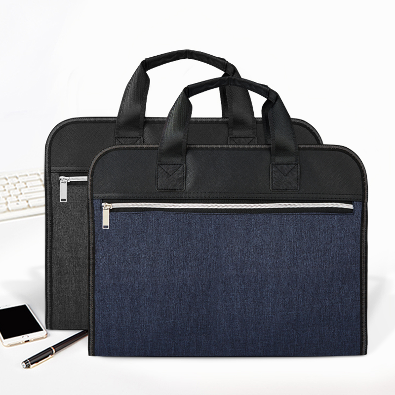 File Bag Customised Hand Business Briefcase A4 Multilayer Waterproof Canvas Pull Chain Information Stall Case Bag Large Capacity Thickened Computer Bag Men And Women's Office Conference Bag Print LOGO