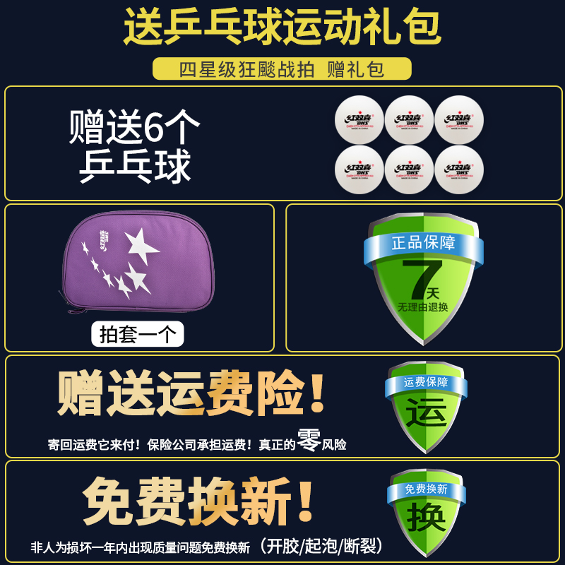 4-star direct shot 1 horizontal shot 1 (free 6-ball racket set)