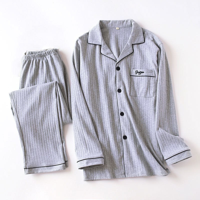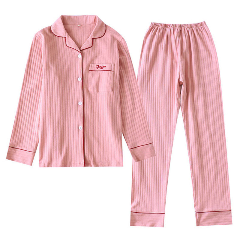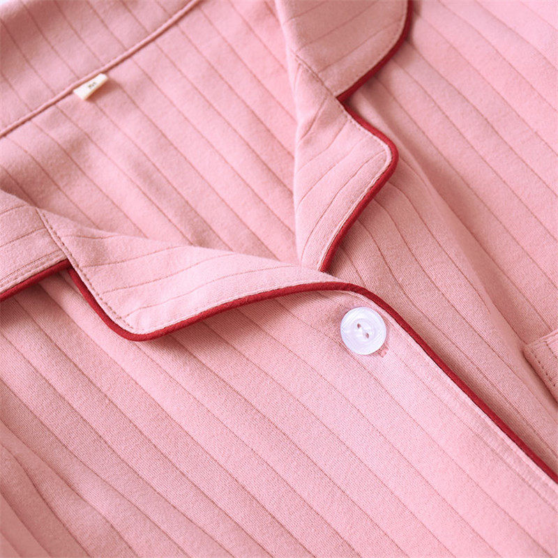 Pure Cotton Pyjamas Lady Autumn Winter Long Sleeves Long Pants Lovers Knit Full Cotton Thickened Pure Color Vertical Striped Home Suit Suit