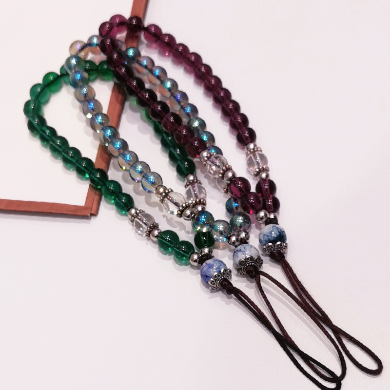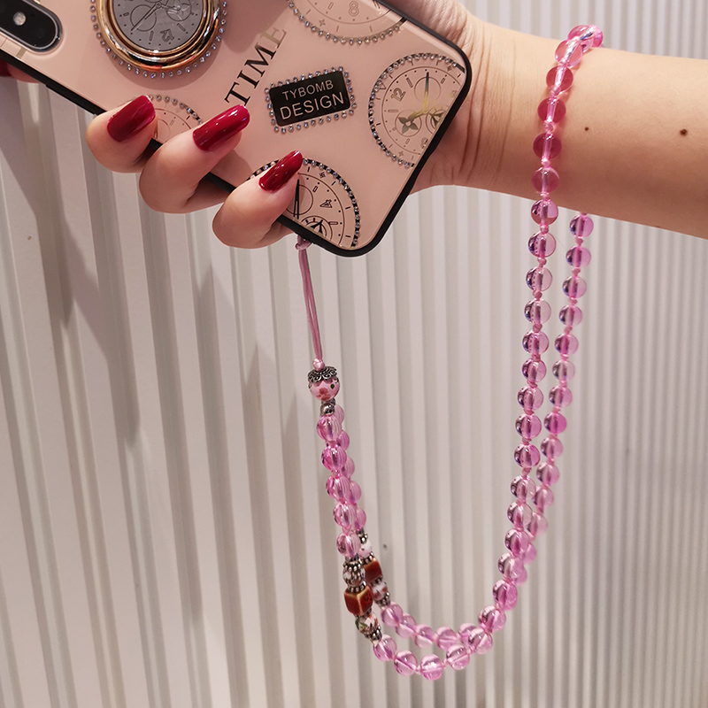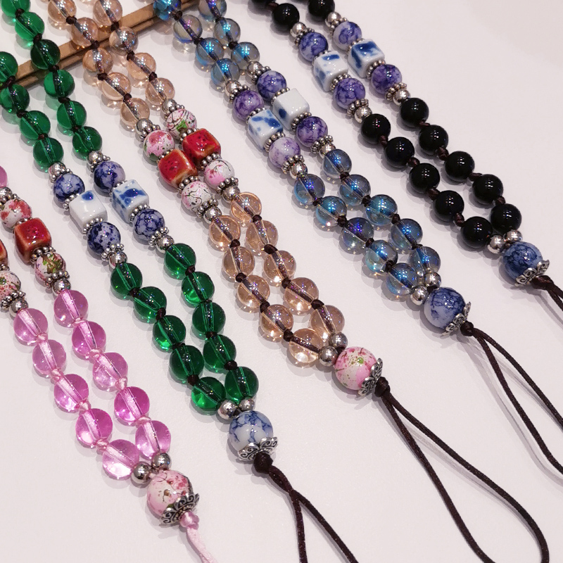 Mobile phone hanging rope hanging neck pendant female crystal necklace pure hand woven Chinese wind hand Alchemy Porcelain Beads Long Chain Short pendant Application oppo Huawei Xiaomi Key workcard Apple xr mobile phone hanging rope