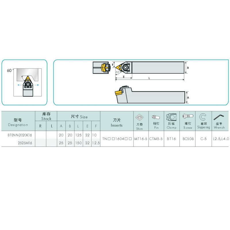 Three Koreas large pressure plate Triangle vehicle Knife Rod BTENN2020K16 2525M16 Outer circle 60-degree car Knife Lever