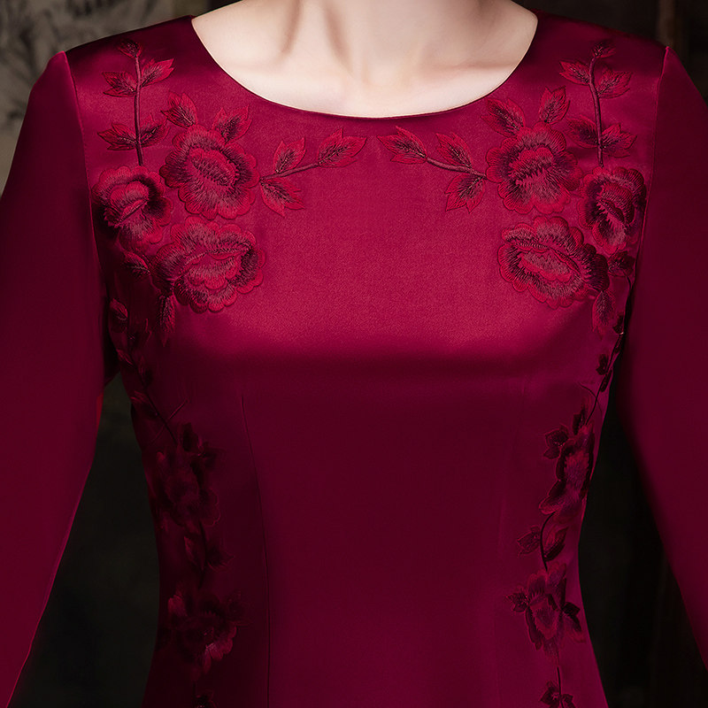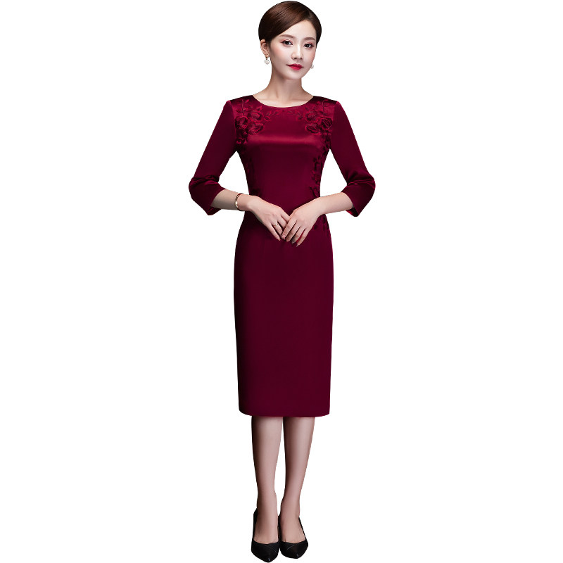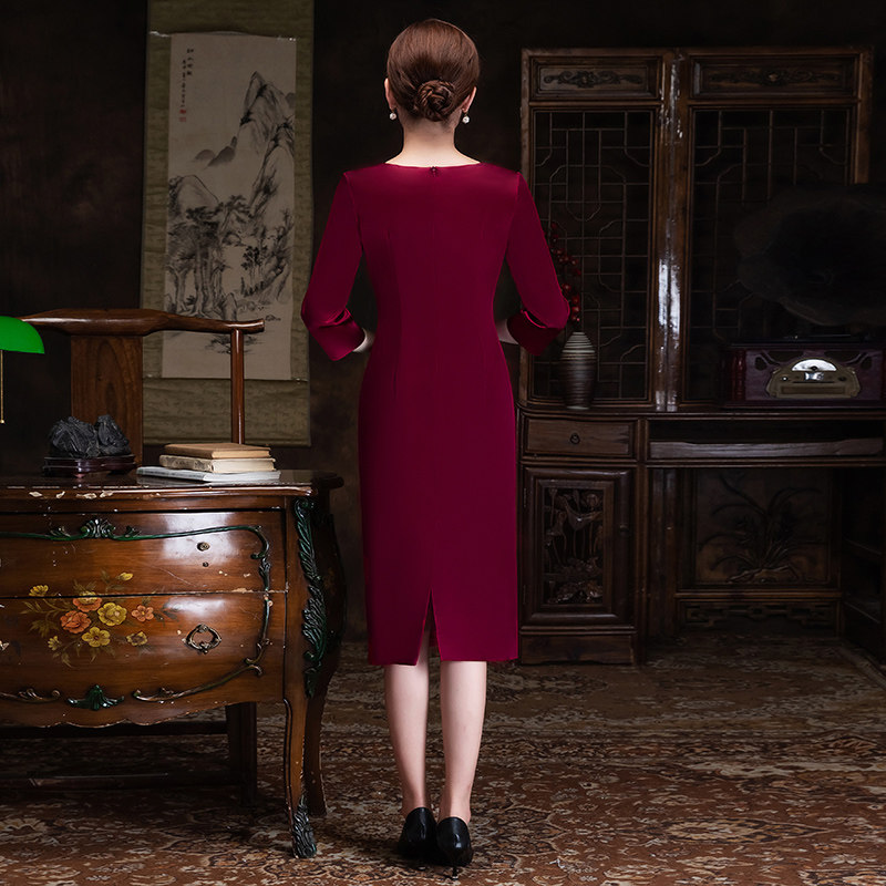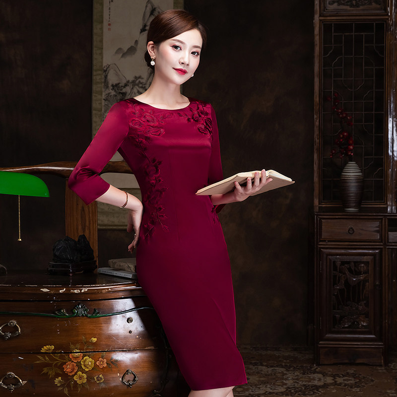Noble Wedding Banquet Mother Dress True Silk Retro Embroidery Medium Long Version Qipao Skirt Mother-In-Law High-end Wedding Costume Spring Summer Season