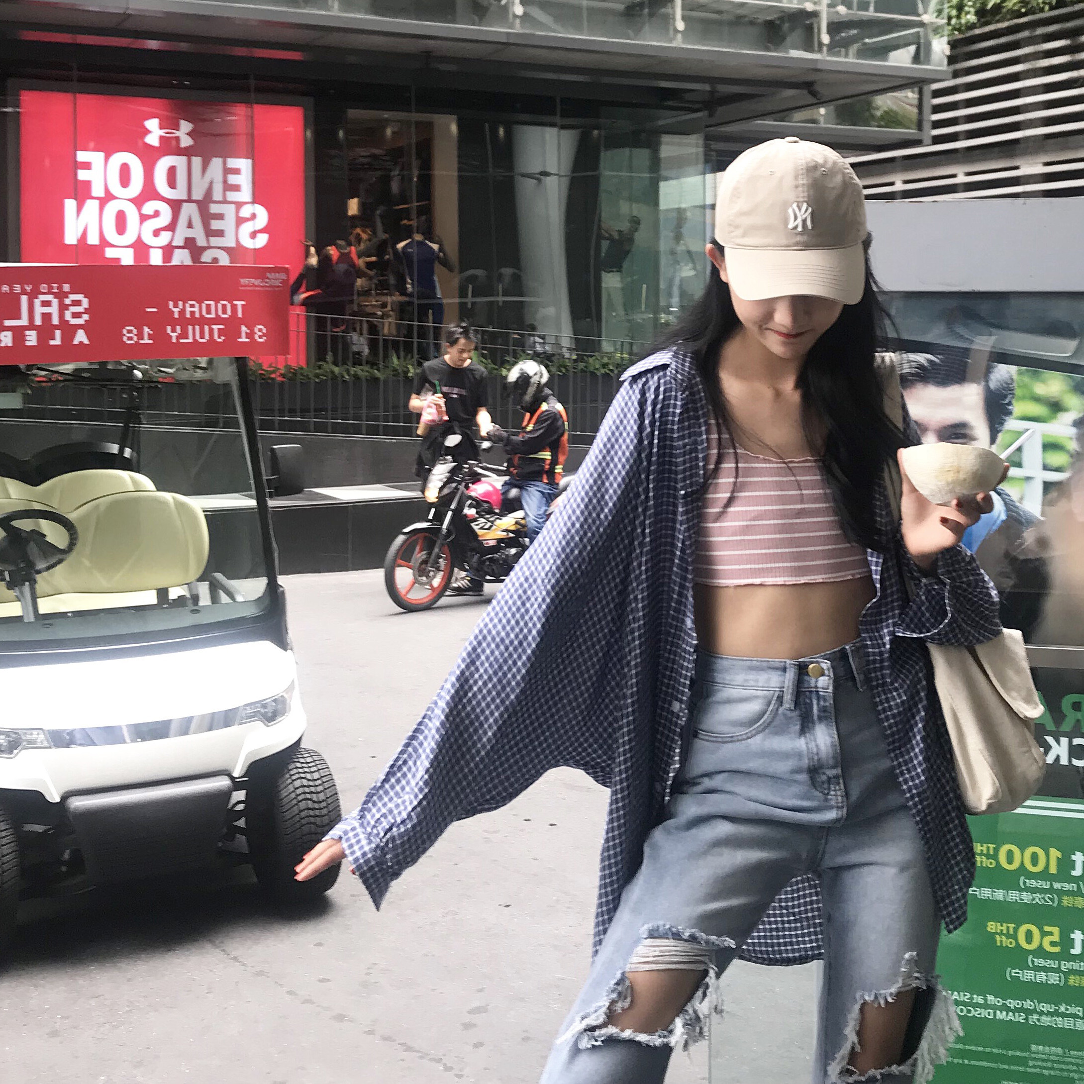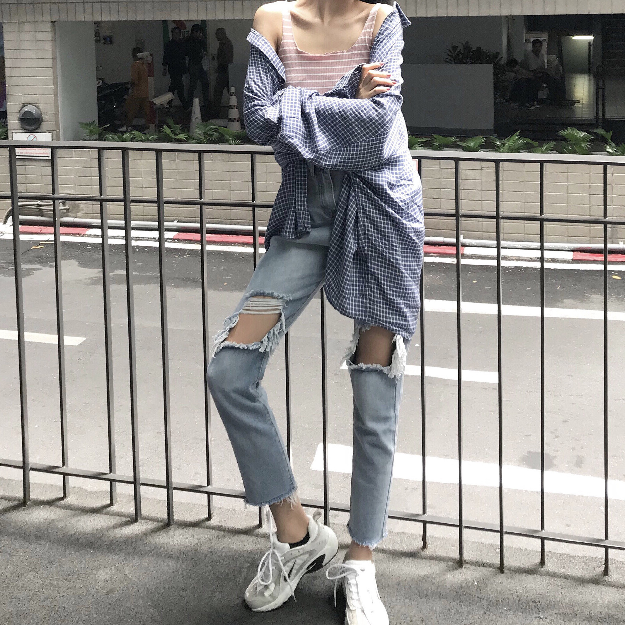 Fat sister 2022 new large size women's clothing is suitable for pants with thick hips and thighs, loose ripped jeans, women's thin