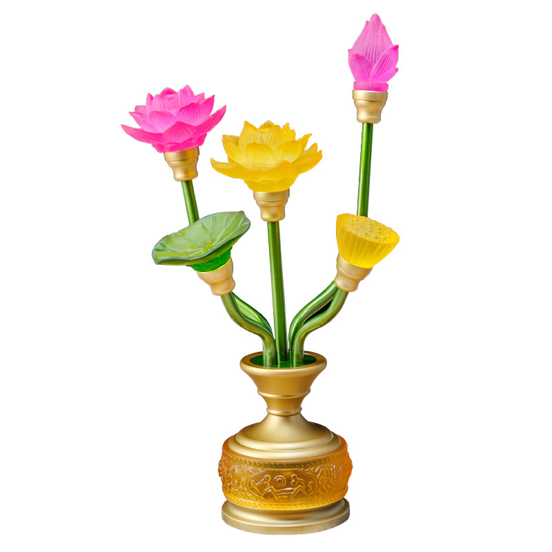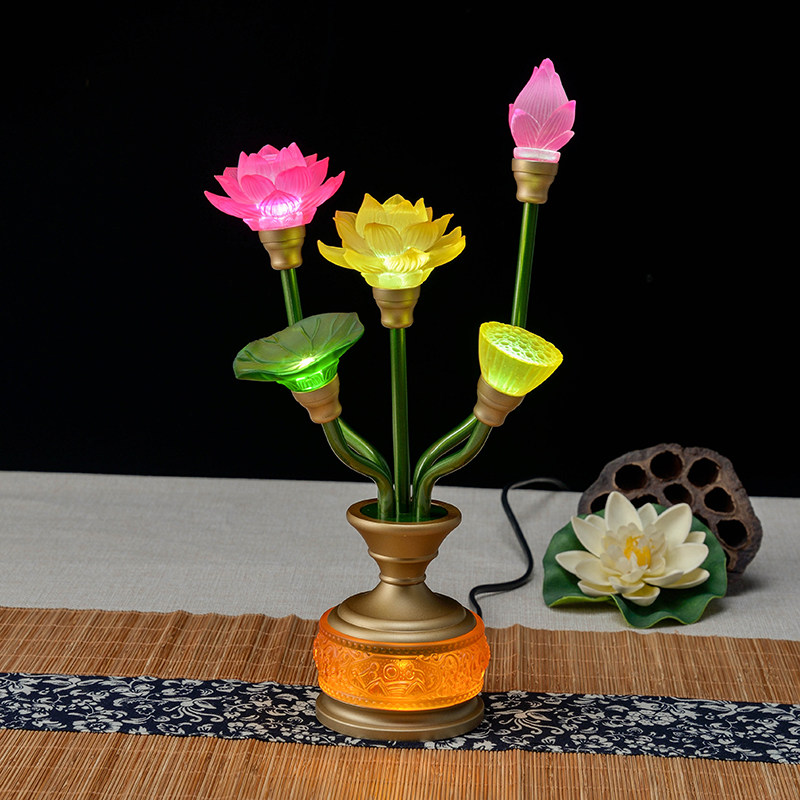Buddha with crystal glass led colorful lotus lamp Buddha front electric supply lamp lotus lamp home Guanyin Changming lamp Buddha lamp