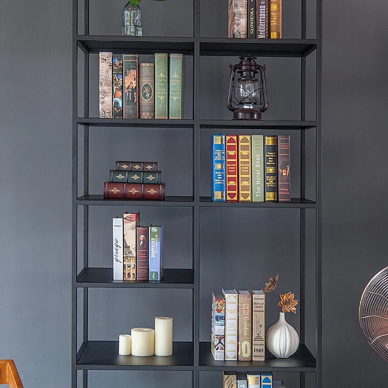 American vintage bookshelf Wrought iron metal bookcase Solid wood shelf Living room storage shelf Floor-to-ceiling display stand Display stand