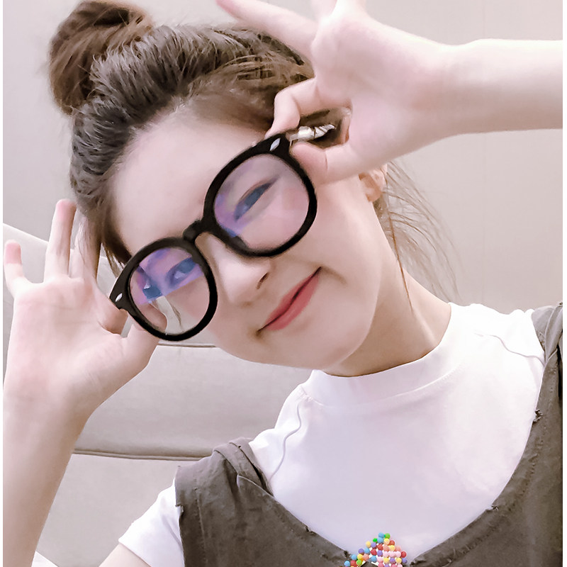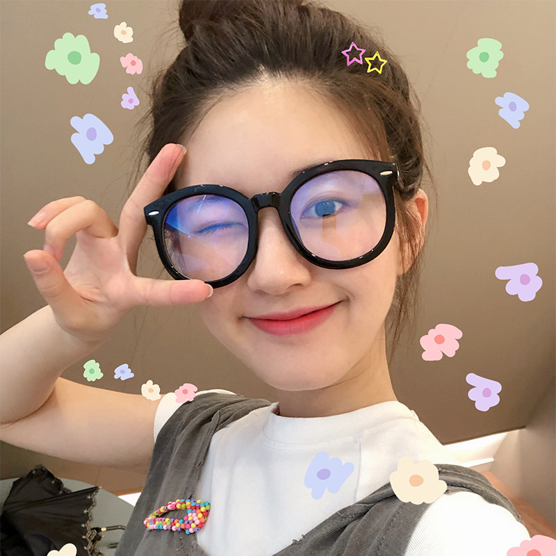 Vegan Black Frame Eyeframe Women's Round Face Display Slim Anti-Ray Radiation Myopia Glasses Oversized Coarse Frame Glasses Woman